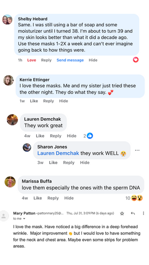 Everything. We use 3x more collagen, a two-piece custom-fit design, and a low-molecular blend of peptides and hydration complexes for visible results — fast. No stickiness, no gimmicks. Just real glow.